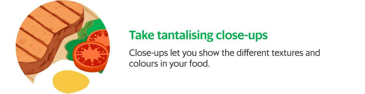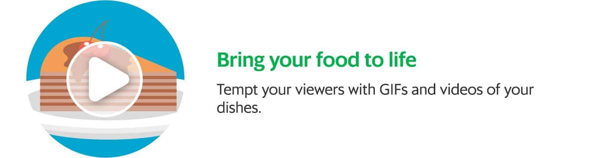 Get your consumers’ appetites going with mouthwatering pictures of food they’ll crave. Here are some tips to help show off the best in your food: