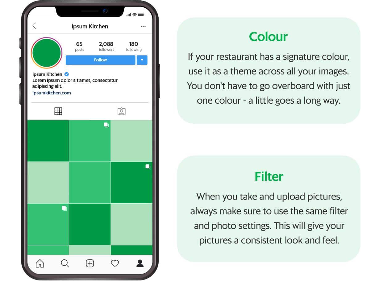 Not only would a consistent theme help give your business a signature look, it would also make sure your pictures look good together on your Instagram homepage.