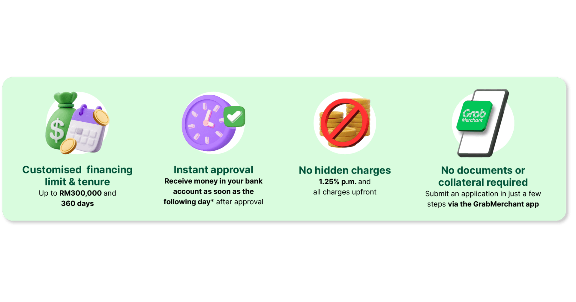 If you need financing to give your business a little boost, then apply for Grab Biz Financing-i, a shariah-compliant business financing with an easy application process and affordable daily payments!