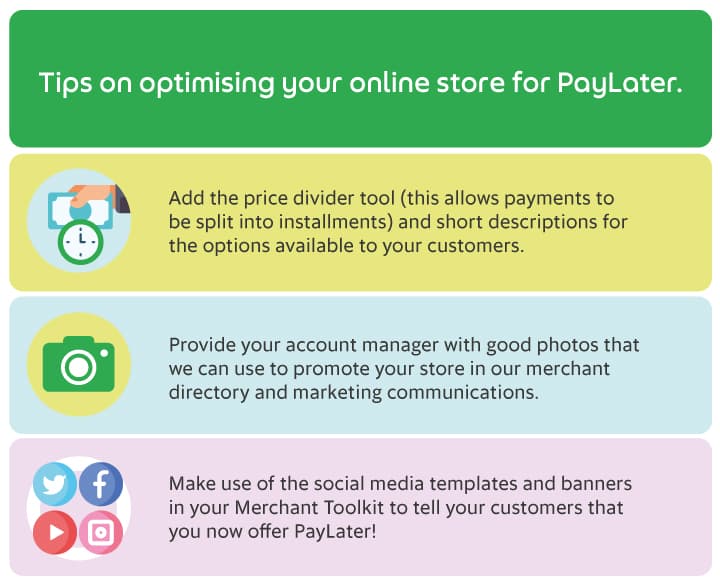 Own an ecommerce business or opening an online store to sell online? Here is how you can remove purchase barriers for your online business by providing customers with quick, secure and flexible ways to pay for their purchases in full, the next month or in 4 installments. Customers who do not own credit cards will love it!