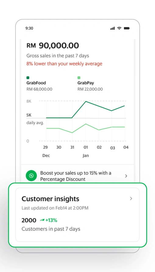 There was a reason you decided to join Grab – this is it! You are in a unique position of having your business digitally tracked, giving you full access to your sales performance, order trends, customer segments breakdown and so much more. Make data-driven decisions with Grab’s customer insights tools and insights reports, to grow your business today!