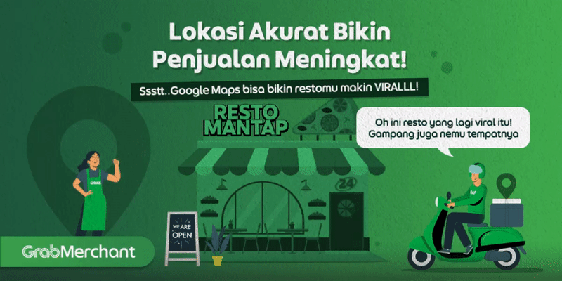 Tahukah Anda bahwa Grab dan Google Maps merupakan dua aplikasi yang biasa dibuka oleh orang-orang yang ingin memesan makanan, baik online maupun offline (makan di tempat). Biasanya, kedua aplikasi tersebut dapat menjawab rasa penasaran masyarakat mengenai harga dan kondisi/lingkungan dari suatu tempat. Calon pelanggan bisa dengan mudah menemui restomu, dan pelanggan yang sudah pernah membeli bisa kasih review yang mendukung.