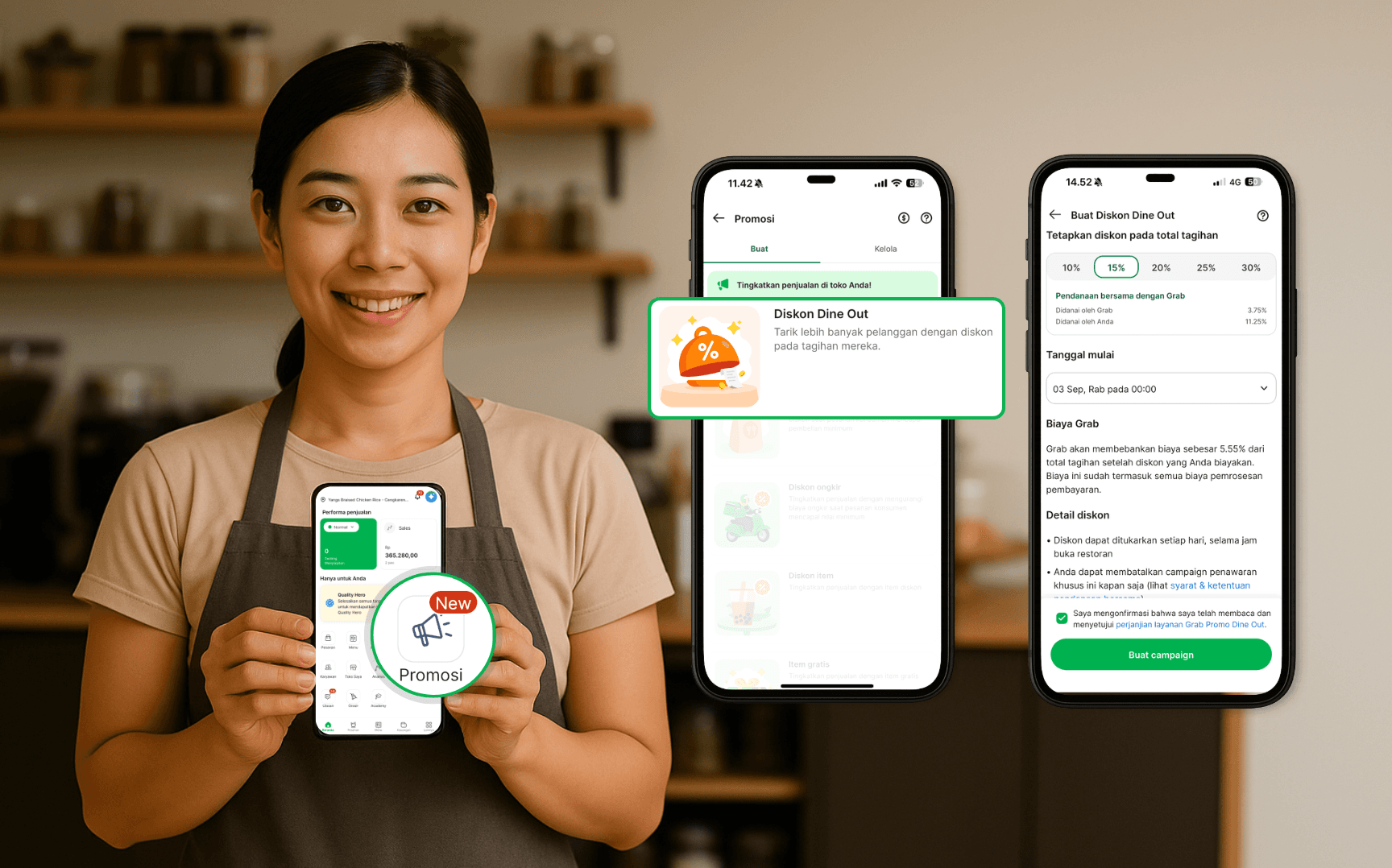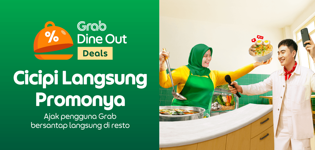 Dengan Voucer Dine Out dan Instant Deals/Diskon Total Bill (%) dari Grab, bisnis Anda akan semakin laris manis.