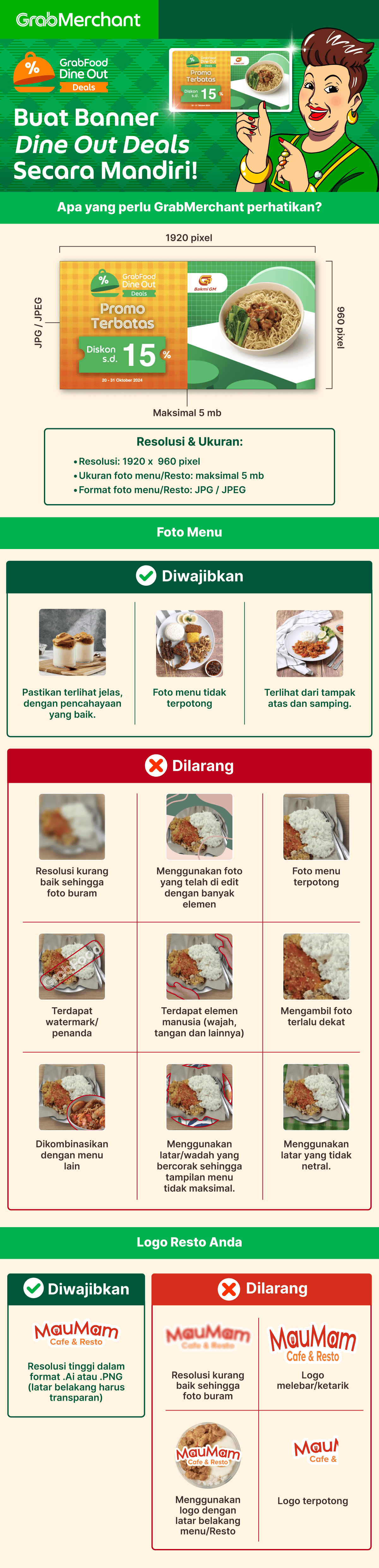 Jika banner Dine Out Deals yang Anda buat tidak sesuai panduan, maka Grab akan mengganti dengan foto yang diambil dari media sosial atau situs resmi Resto Anda.