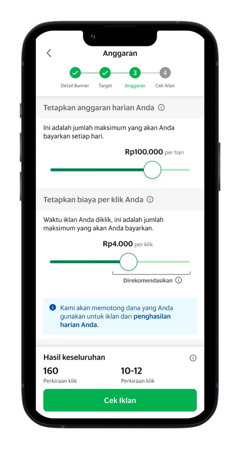Mendapatkan rekomendasi anggaran, agar iklan yang Anda buat lebih mendapatkan prioritas dibandingkan yang lain.