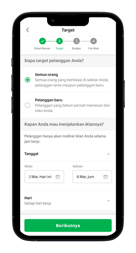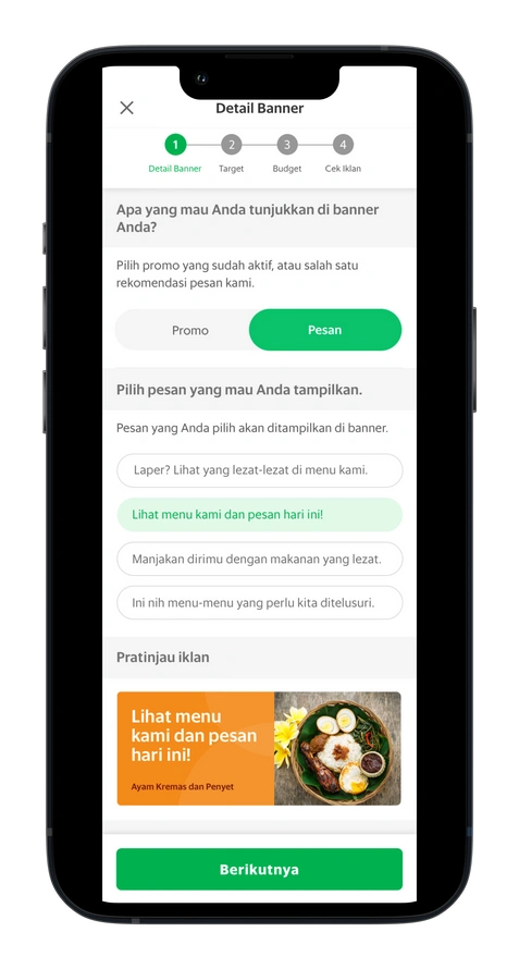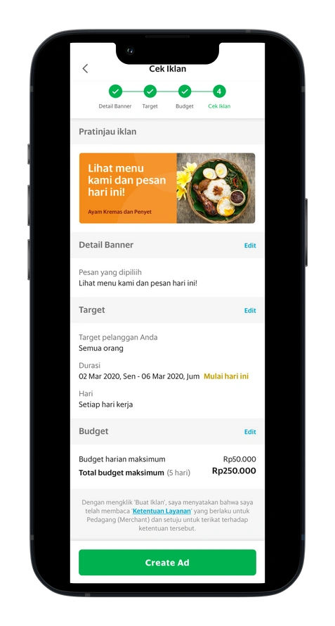 5. Lakukan perubahan pada kampanye berdasarkan saran dalam aplikasi GrabMerchant.