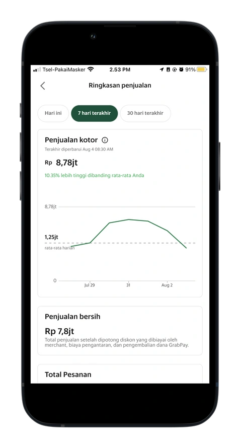 Klik pada tab “analisis” di halaman beranda aplikasi GrabMerchant.