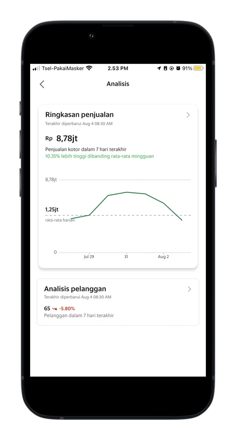 Selain melihat ringkasan penjualan, Anda dapat menemukan analisis pelanggan pada fitur Analisis juga loh!