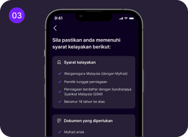 Semak kelayakan anda, sediakan 6 bulan penyata bank BISNES anda yang terkini.
