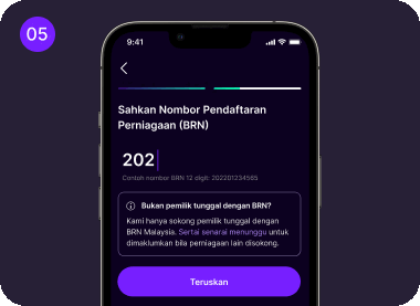 Masukkan Nombor Pendaftaran Perniagaan (BRN) 12 digit anda