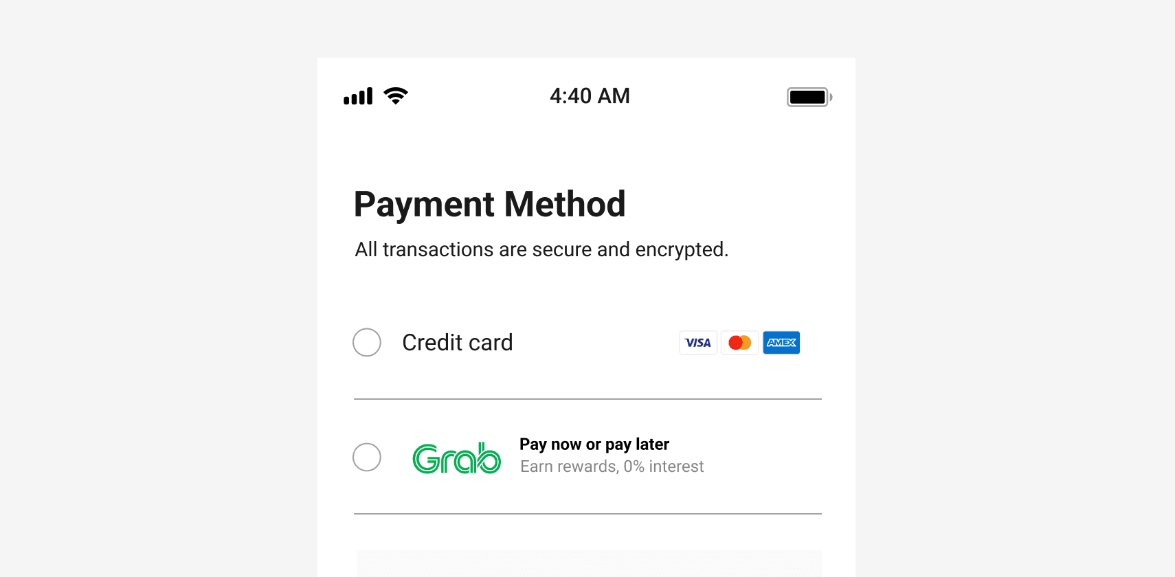 Paylater adalah cara fleksibel untuk membuat bayaran | PayLater by Grab ialah perkhidmatan "Beli sekarang, Bayar Kemudian" yang menawarkan pembeli cara fleksibel untuk membayar, samada membayar sekarang atau 4 kali ansuran, keduanya tanpa faedah. | “PayLater by Grab memberi anda pilihan cara pembayaran yang fleksibel: samada bayar pada bulan hadapan atau dengan 4 pembayaran” |