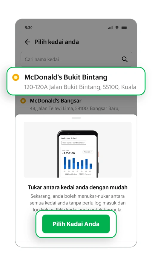 Adakah anda memiliki lebih dari satu kedai? Anda hanya memerlukan satu aplikasi untuk menguruskan semuanya. Kembangkan dan uruskan cawangan-cawangan anda di Aplikasi GrabMerchant atau portal GrabMerchant