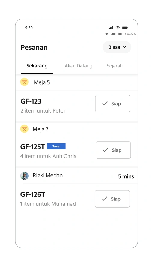 Cetak pelekat kod QR yang kami hantarkan dan lekatkan pada meja-meja di kedai anda. Pelanggan akan imbas kod QR tersebut.