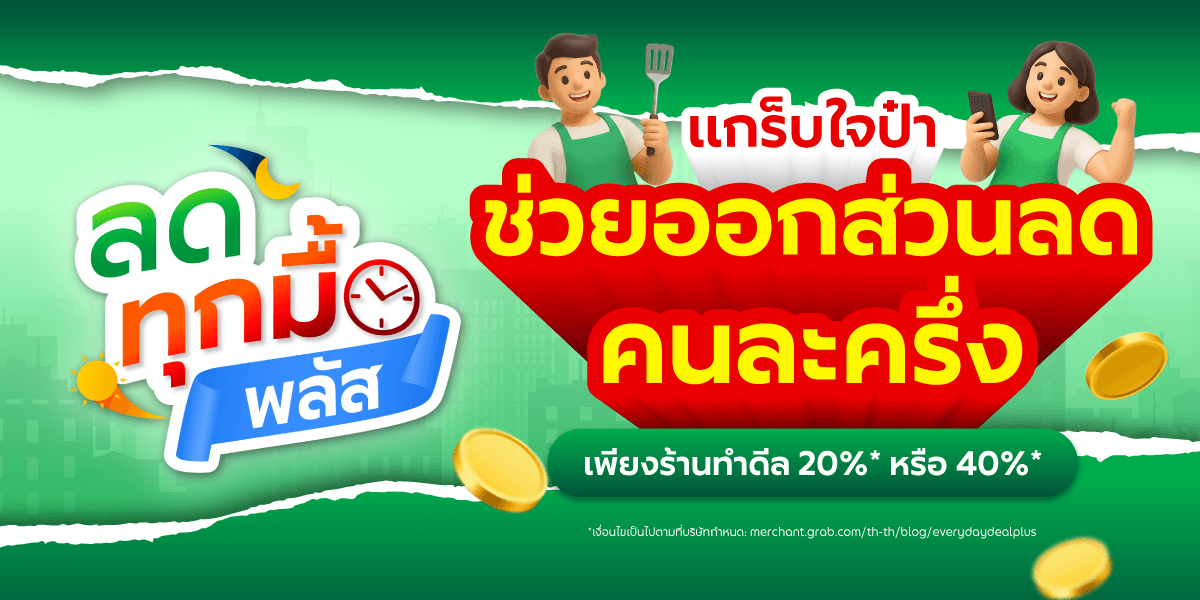 บริษัทฯ ขอสงวนสิทธิ์ให้เฉพาะร้านค้าที่ได้รับการแจ้งเตือนสิทธิ์เข้าร่วมแคมเปญบนแอป GrabMerchant เท่านั้น