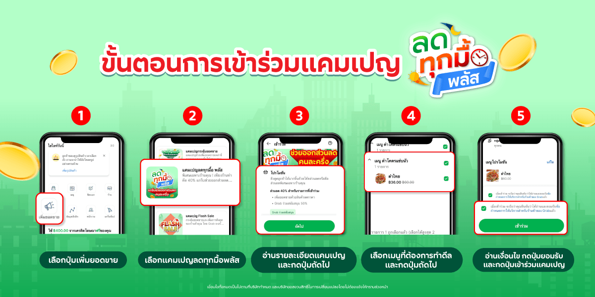 ขั้นตอนการเข้าร่วมแคมเปญ "ลดทุกมื้อ พลัส” และ “ร้านเล็กลดทุกมื้อ”