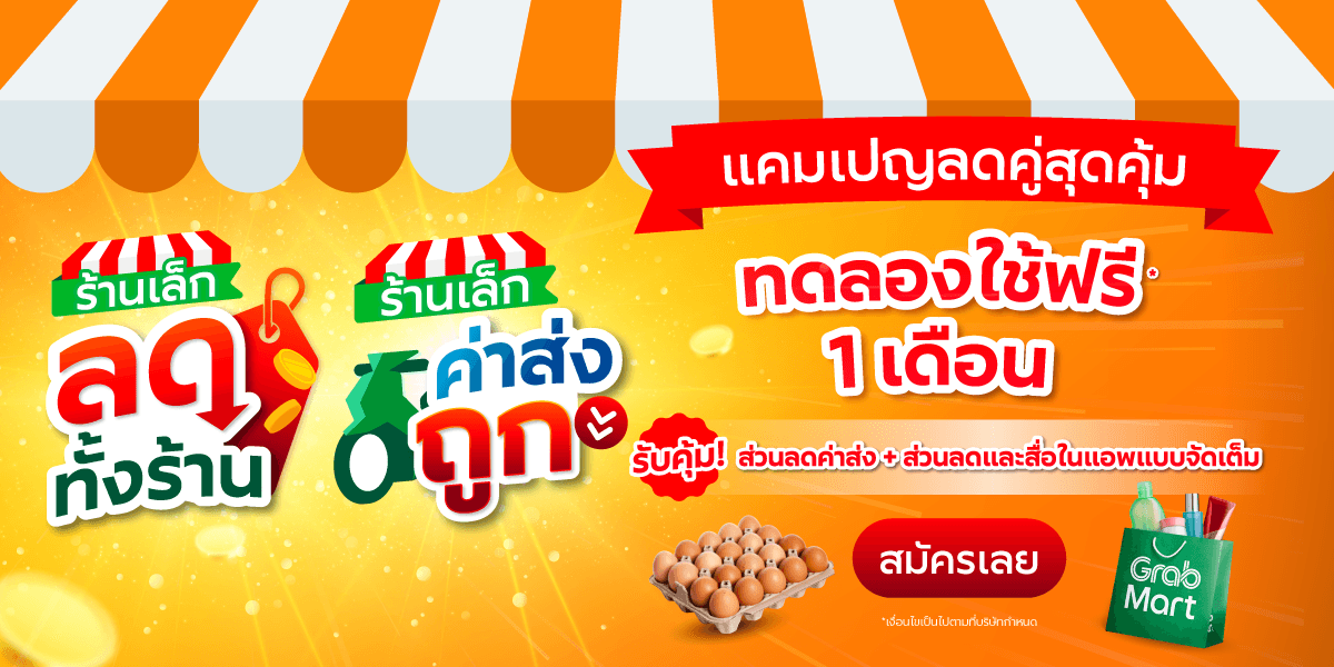 แพ็กเกจลดคู่สุดคุ้ม ทดลองใช้ฟรี 1 เดือน* แคมเปญ "ร้านเล็กลดทั้งร้านและร้านเล็กค่าส่งถูก"