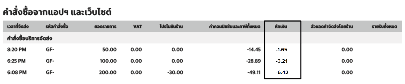 ร้านค้าสามารถตรวจสอบค่าใช้จ่ายของแคมเปญได้จากรายงานการขายที่ถูกส่งให้ผ่านทางอีเมล บริเวณรายการ 'หักเงิน'