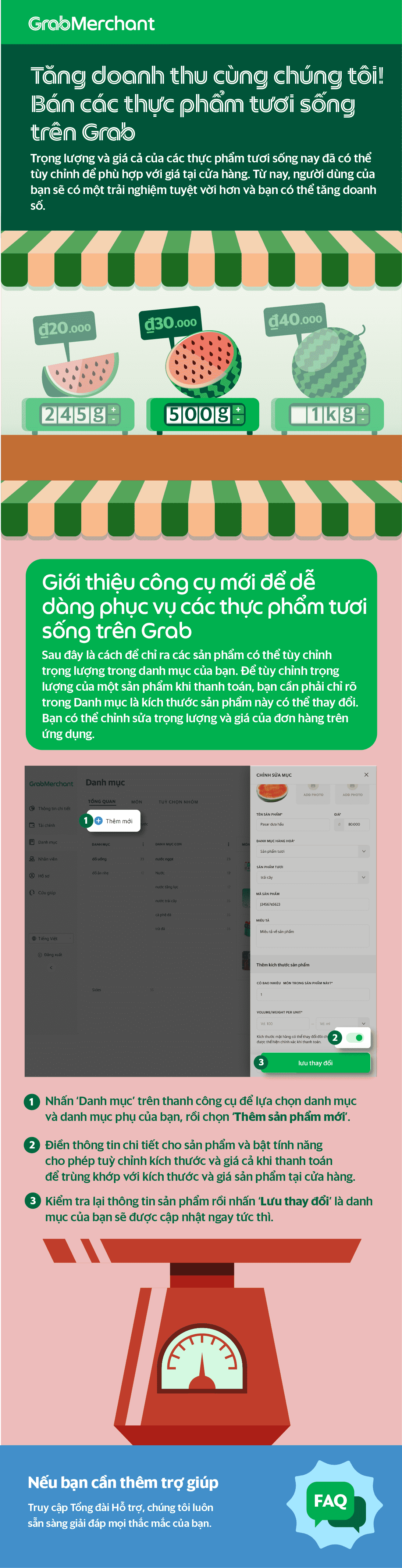 Với tính năng “Bán theo trọng lượng sản phẩm” từ nay Đối tác có thể tùy chỉnh trọng lượng của sản phẩm để phù hợp với mức giá tại cửa hàng.