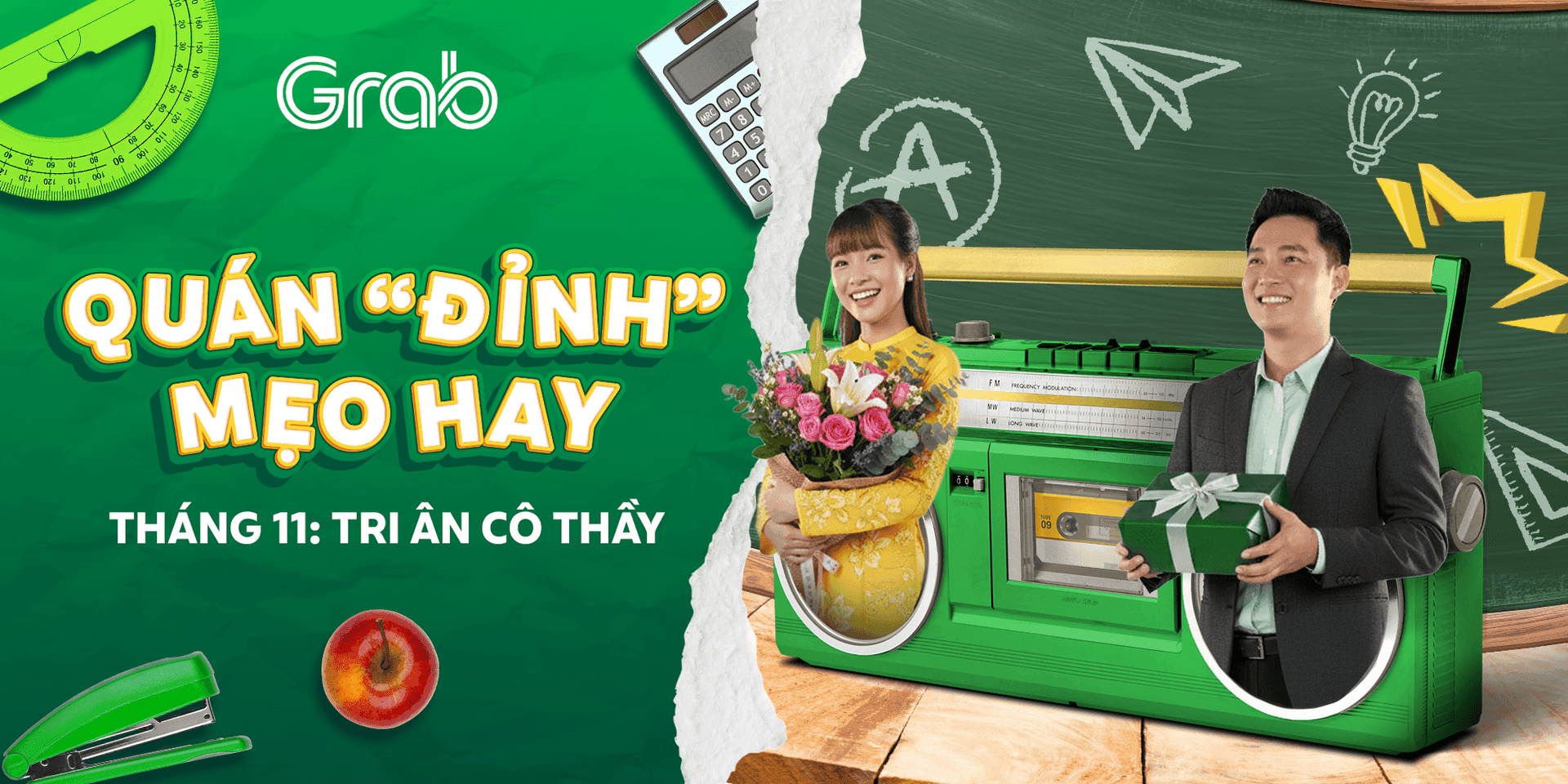Hãy cùng Grab tiếp tục thực hiện và lan tỏa những ý tưởng/ câu chuyện hay qua chương trình Quán “đỉnh” - Mẹo hay hàng tháng.