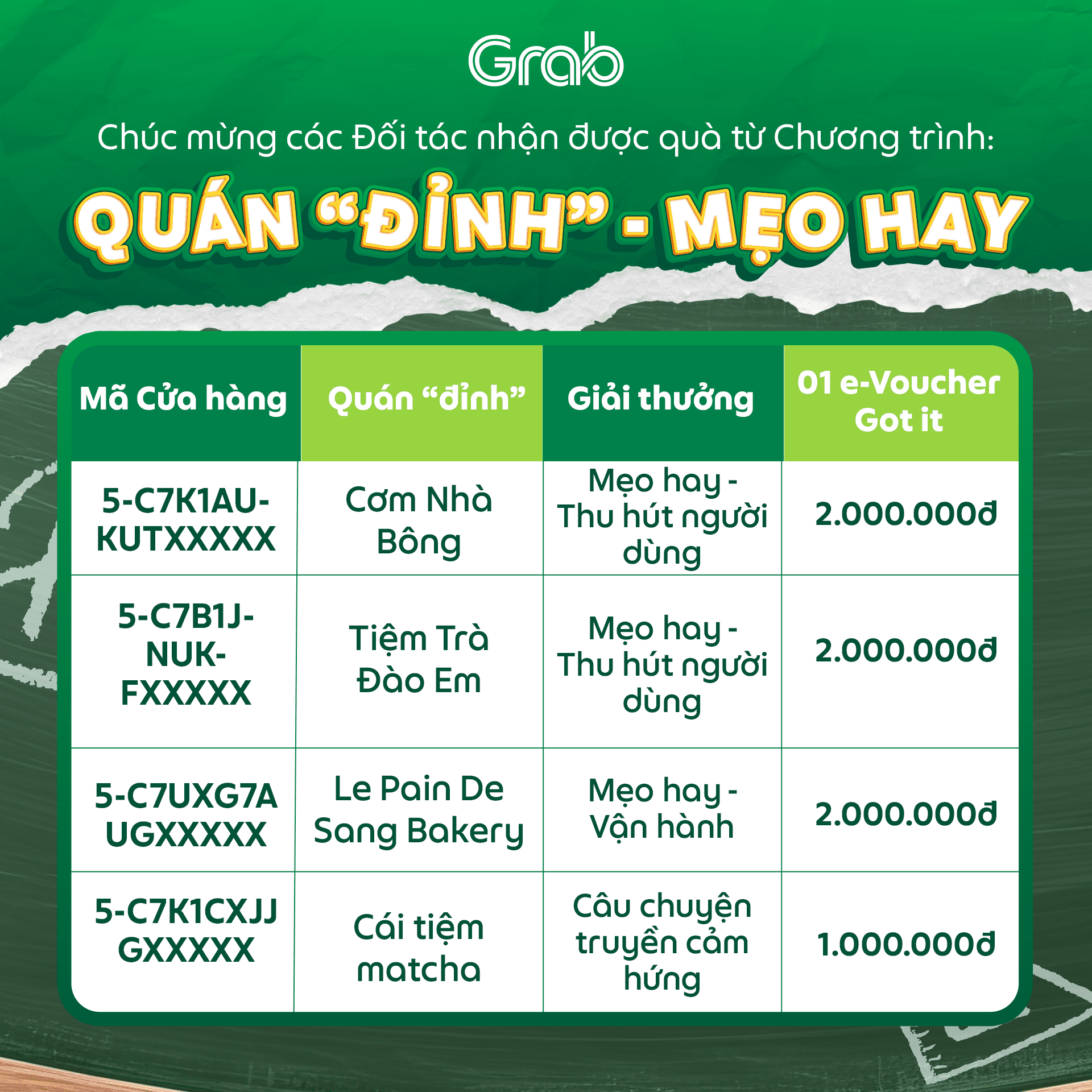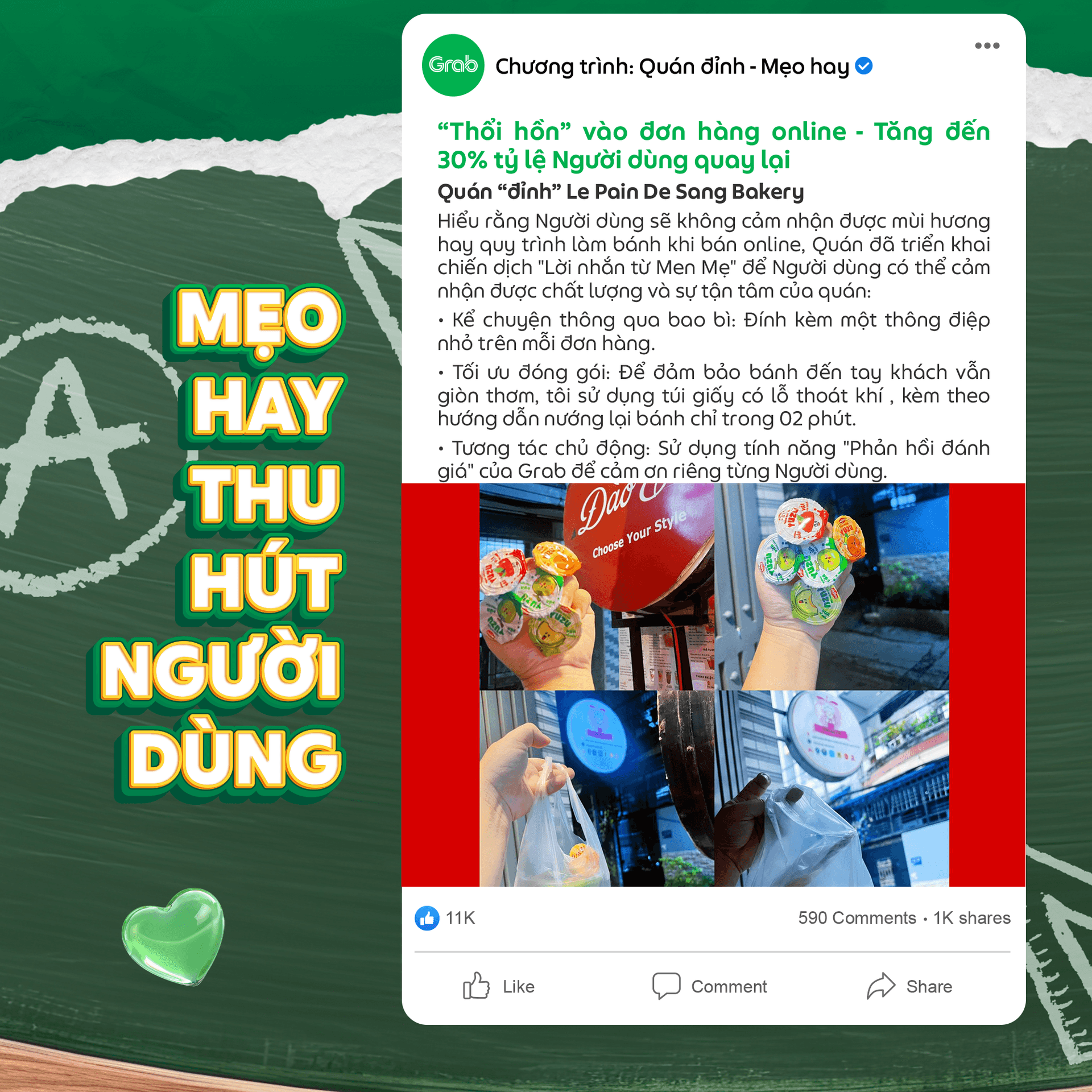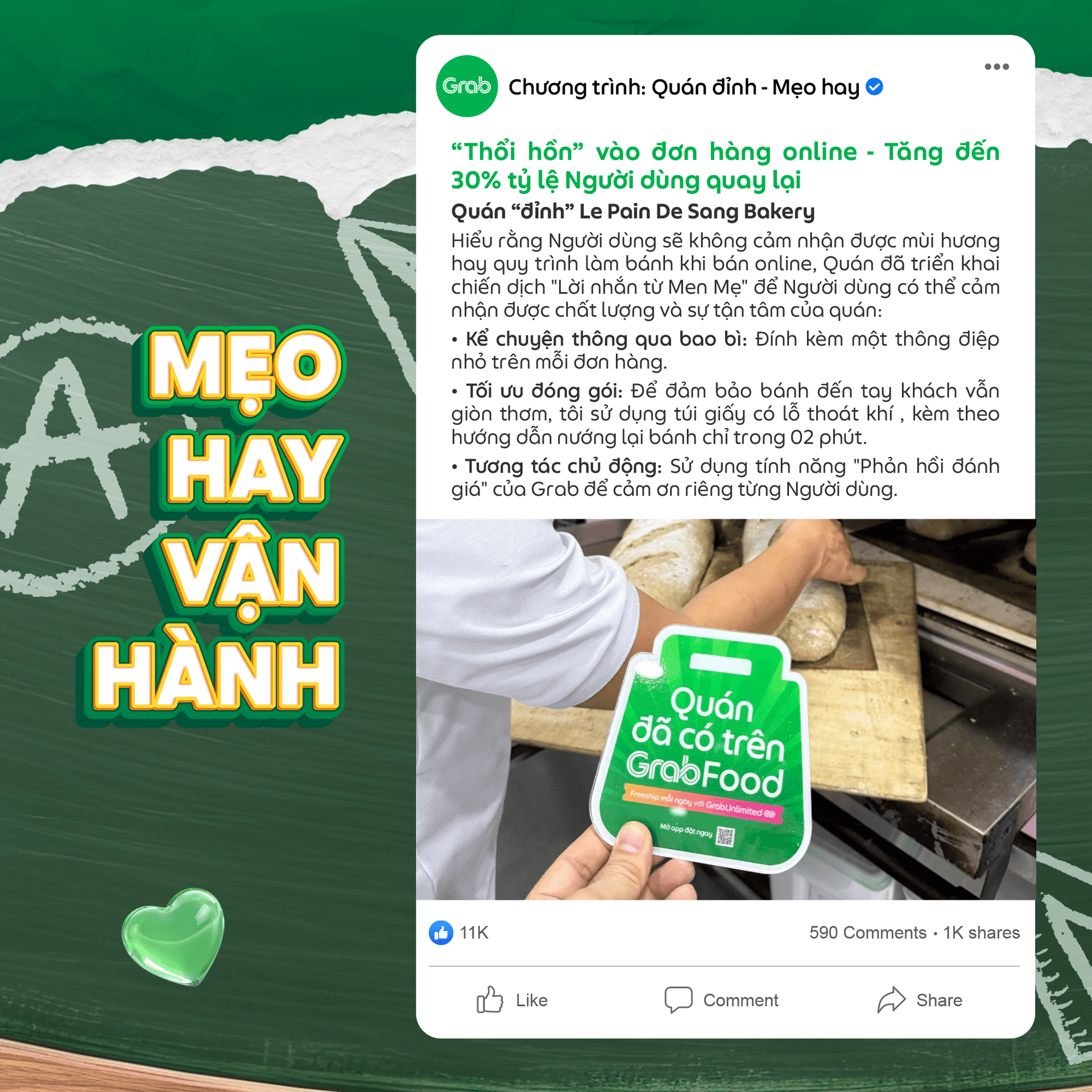 Hãy cùng Grab tiếp tục thực hiện và lan tỏa những ý tưởng/ câu chuyện hay qua chương trình Quán “đỉnh” - Mẹo hay hàng tháng.