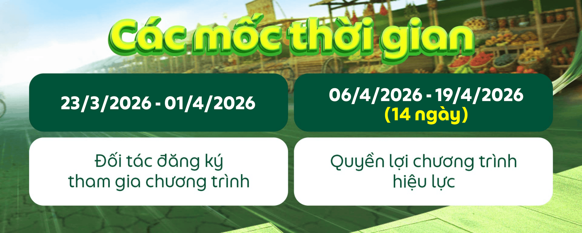 Các quyền lợi sẽ không được áp dụng nếu Đối tác không đạt điều kiện của chương trình và/hoặc dừng chiến dịch “Đi chợ gần nhà”.