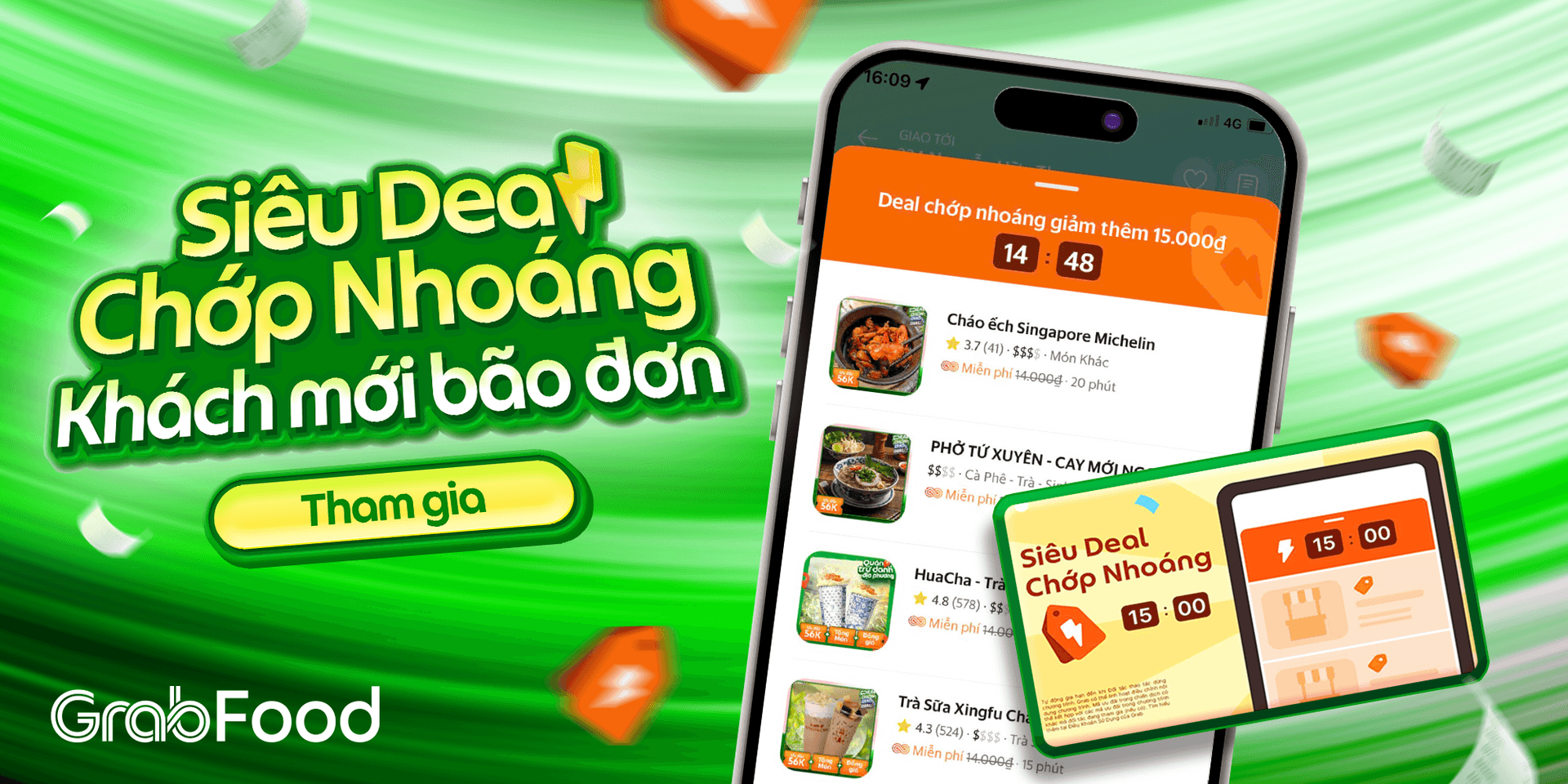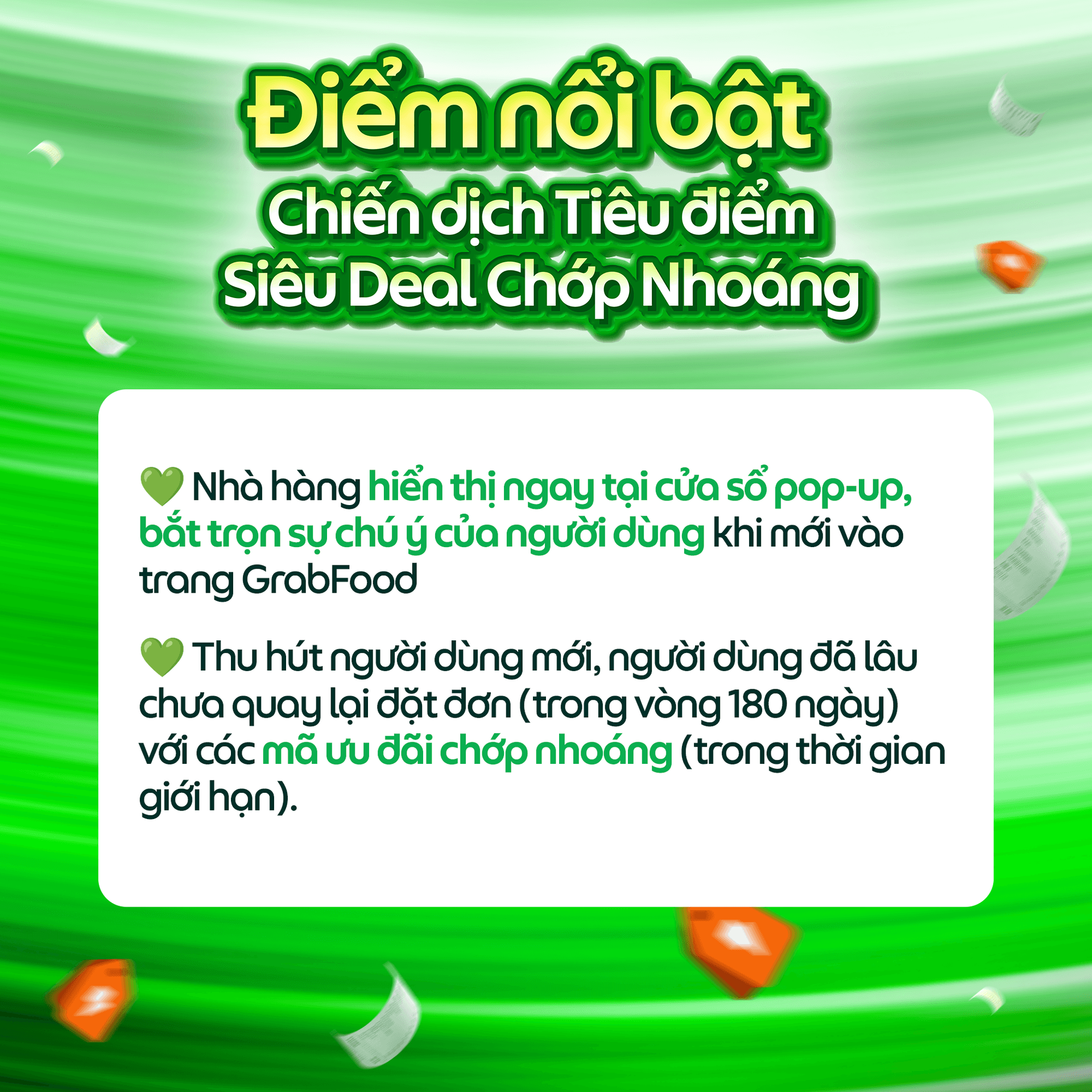 Cùng Grab khám phá ngay thông tin chi tiết về Chiến dịch Tiêu điểm Siêu Deal Chớp Nhoáng bên dưới và đăng ký tham gia ngay!
