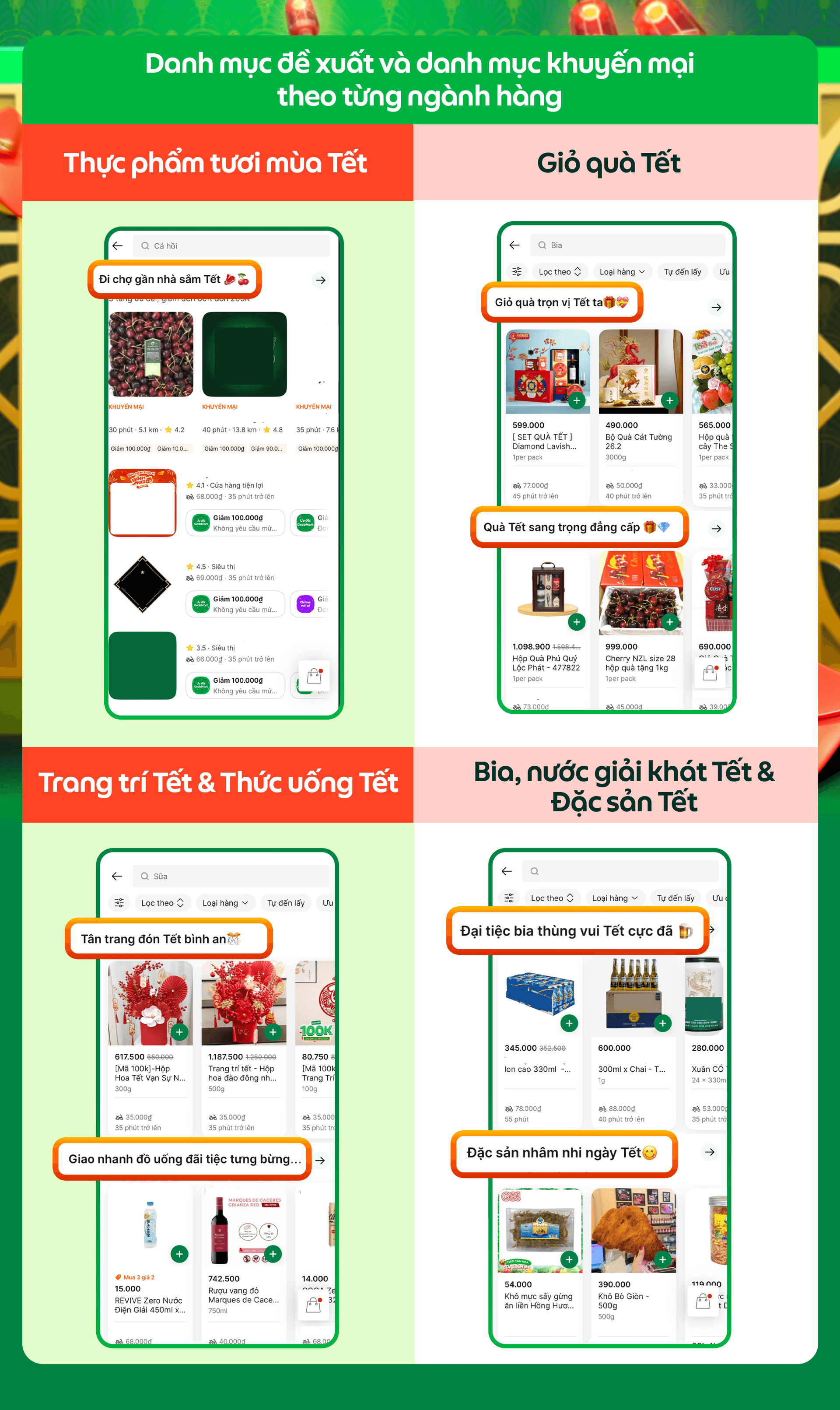 🌸Mặt hàng Tết “chiếm sóng” khắp GrabMart: Quà Tết, hoa Tết, đồ trang trí Tết, trái cây Tết,...