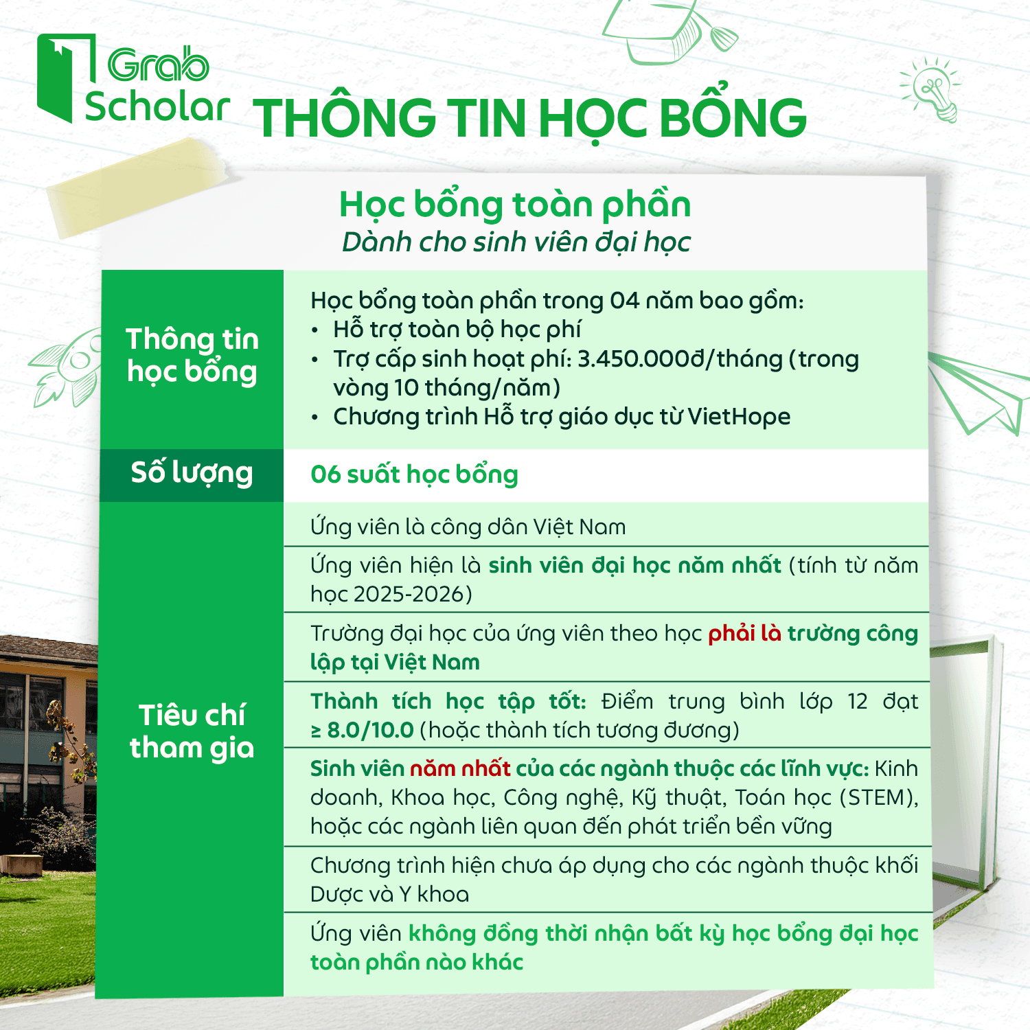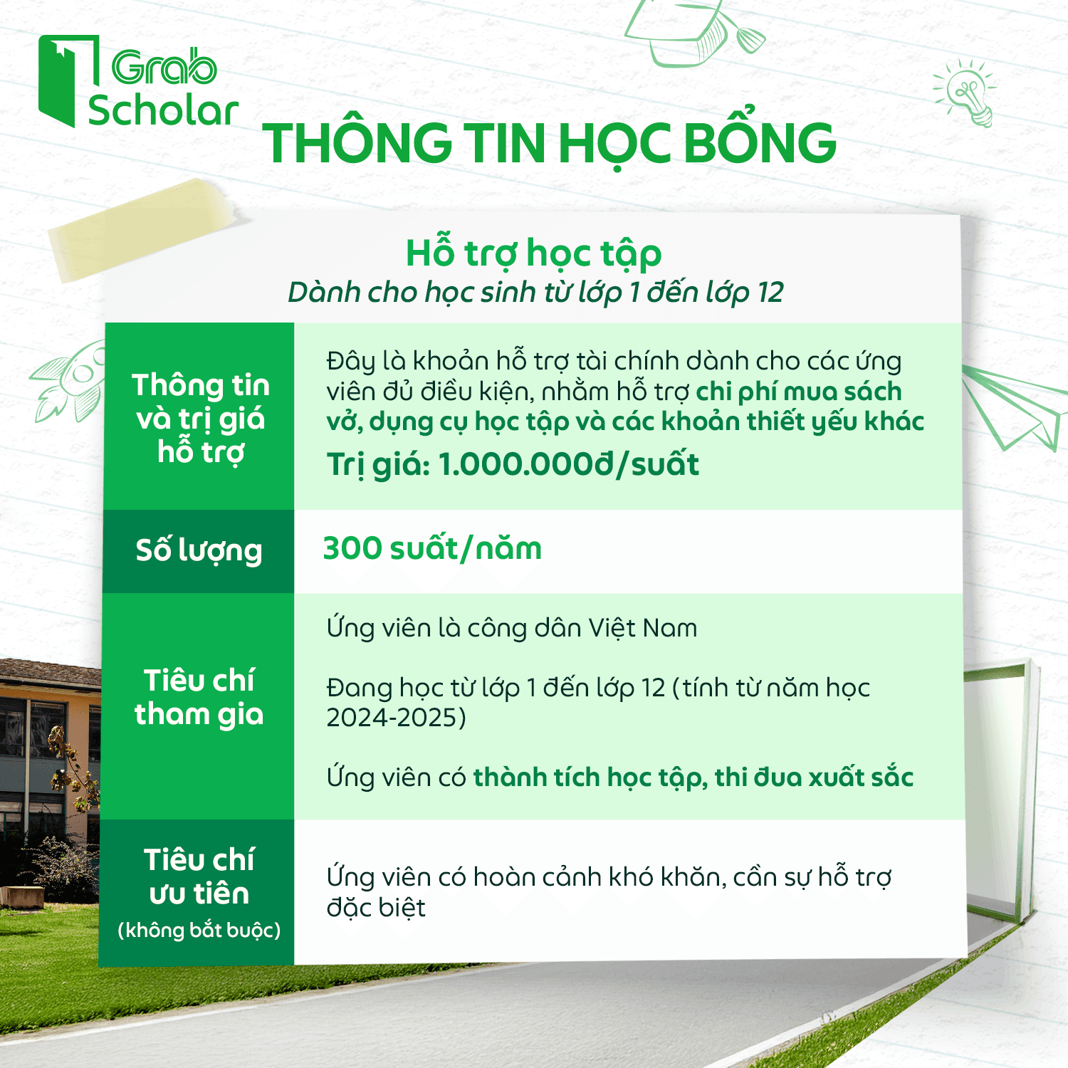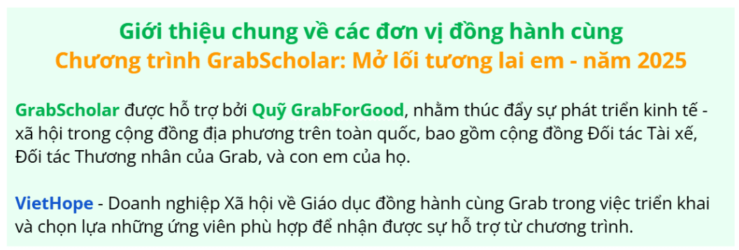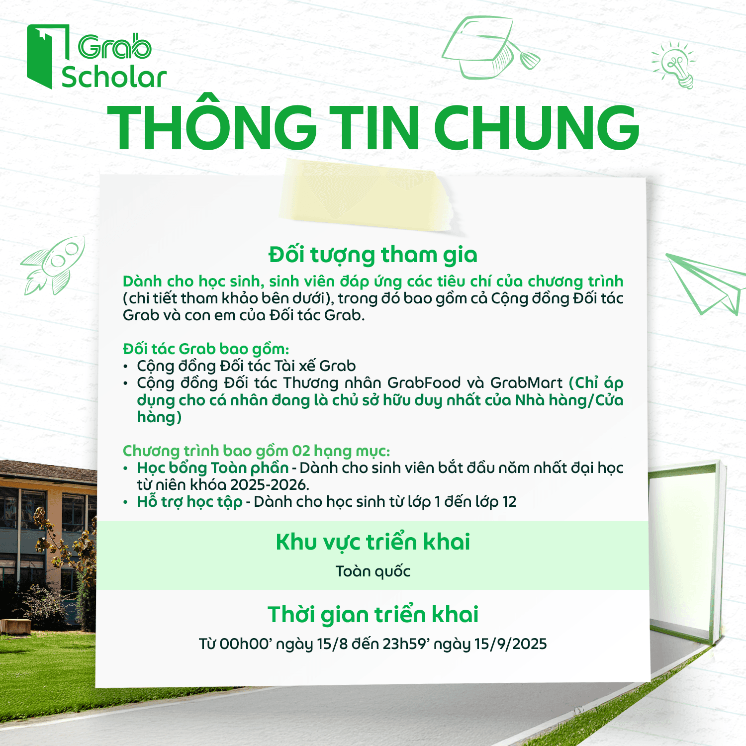 Với mong muốn tiếp thêm động lực học tập cho các em học sinh, sinh viên trên toàn quốc, Chương trình GrabScholar: Mở lối tương lai em - năm 2025 (Chương trình GrabScholar) chính thức được Grab khởi động.