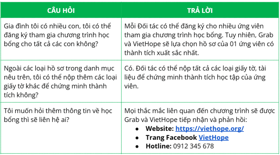 Mọi thắc mắc liên quan đến chương trình Đối tác vui lòng liên hệ VietHope để được giải đáp.