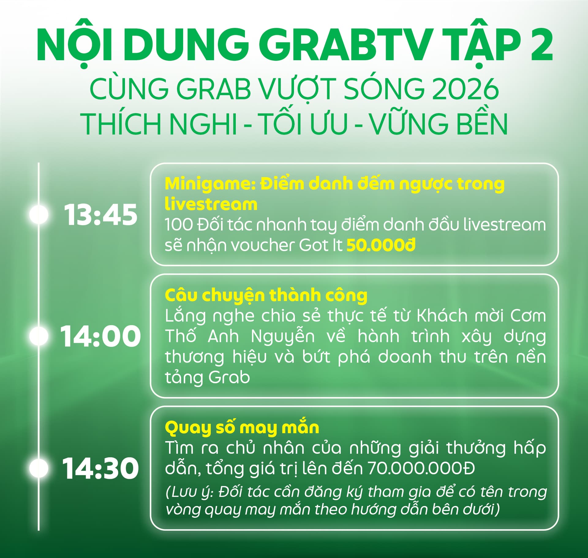 Câu trả lời sẽ có tại GrabTV Tập 2: "Cùng Grab vượt Sóng 2026: Thích nghi - Tối ưu - Vững bền".