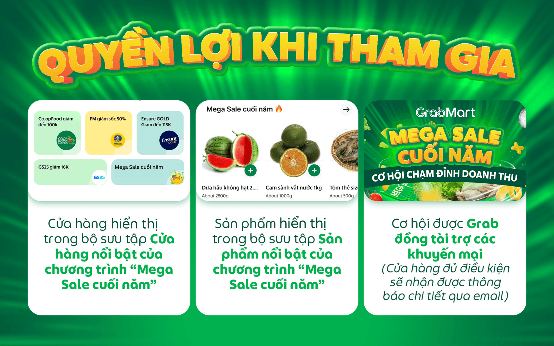 💚 Hãy cùng GrabMart khám phá và chuẩn bị cho chương trình “MEGA SALE CUỐI NĂM” ngay bây giờ nhé!