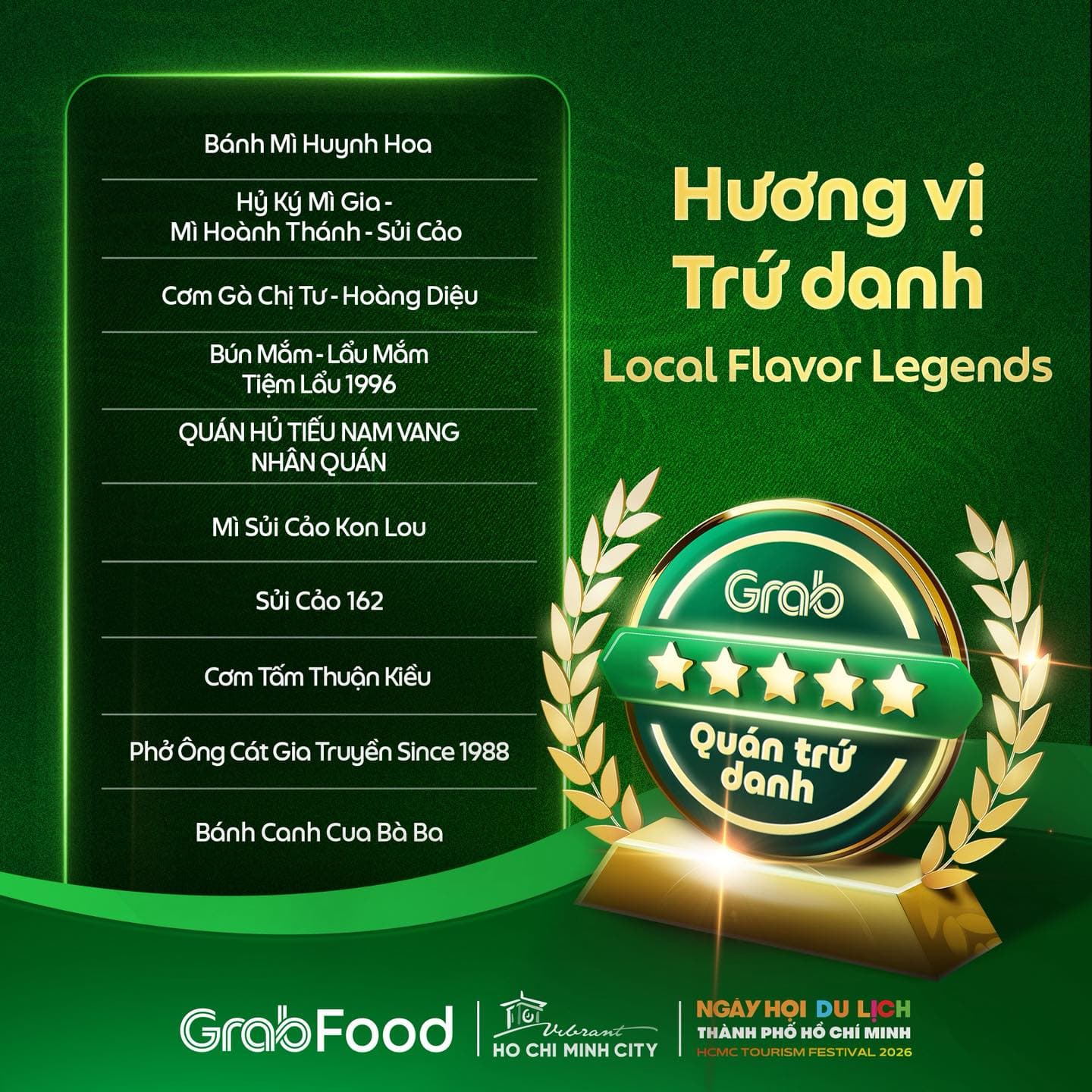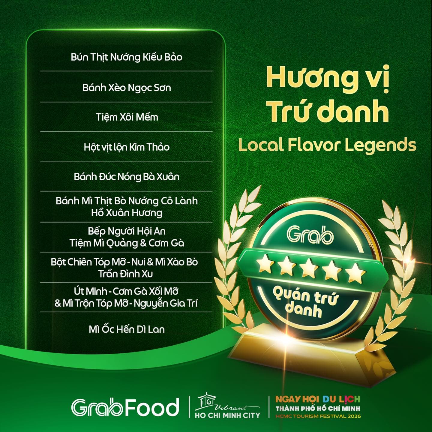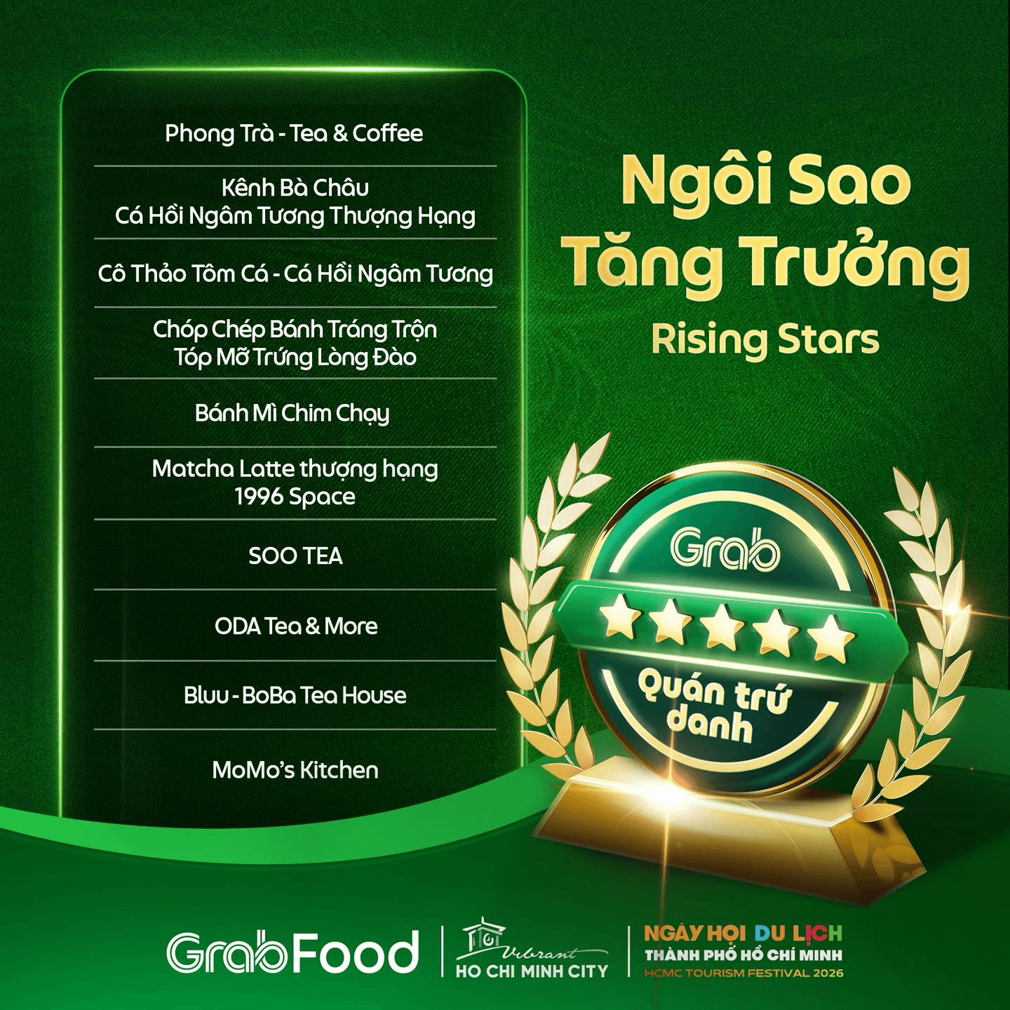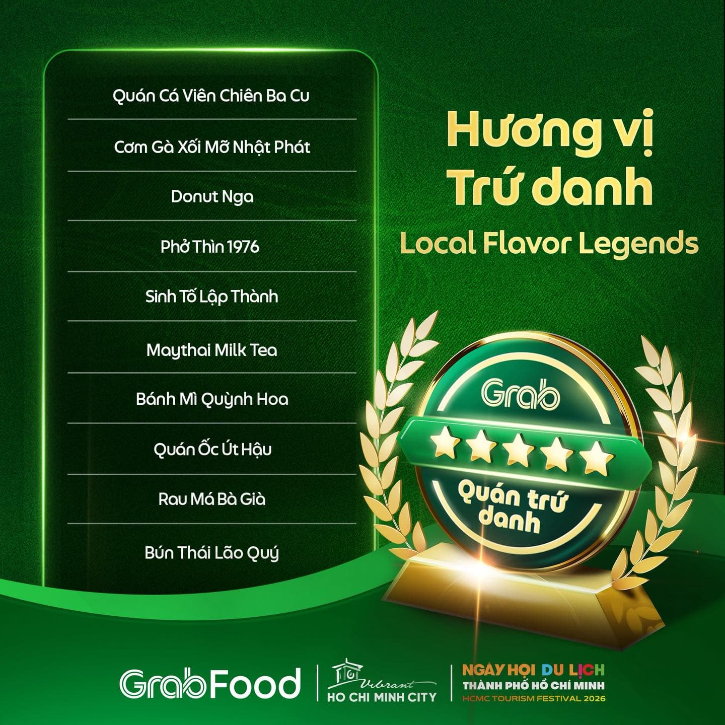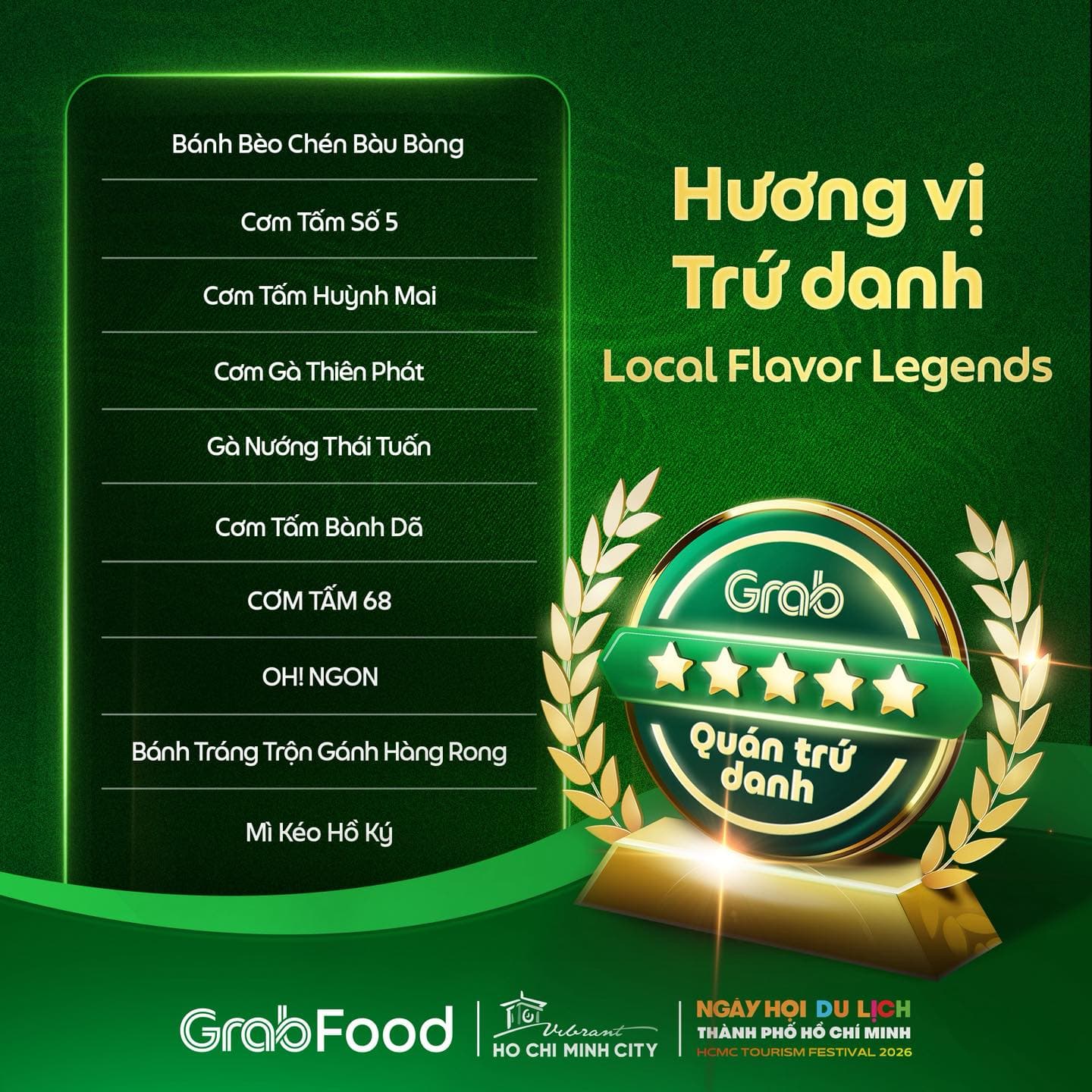 Tối ngày 05/4/2026, Grab cùng Sở Du lịch TP. HCM trao giải cho 60 đơn vị nhà hàng nổi bật và được yêu thích nhất trong nền ẩm thực TP. HCM (dựa trên số liệu người dùng thực tế của Grab). Trong đó: