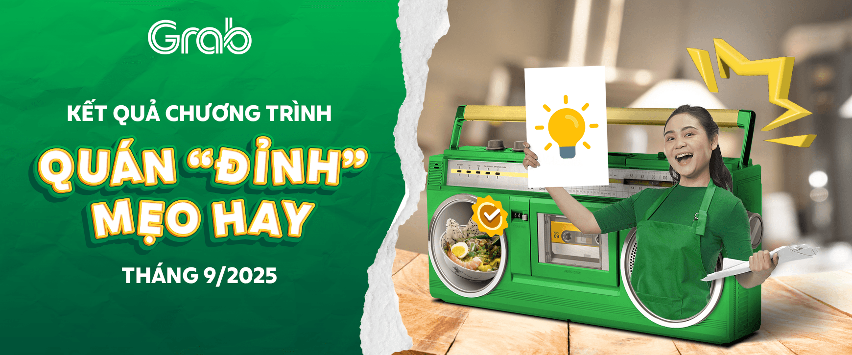 Đối tác hãy cùng Grab xem ngay các ý tưởng/câu chuyện hay trong tháng 9/2025 nhé.