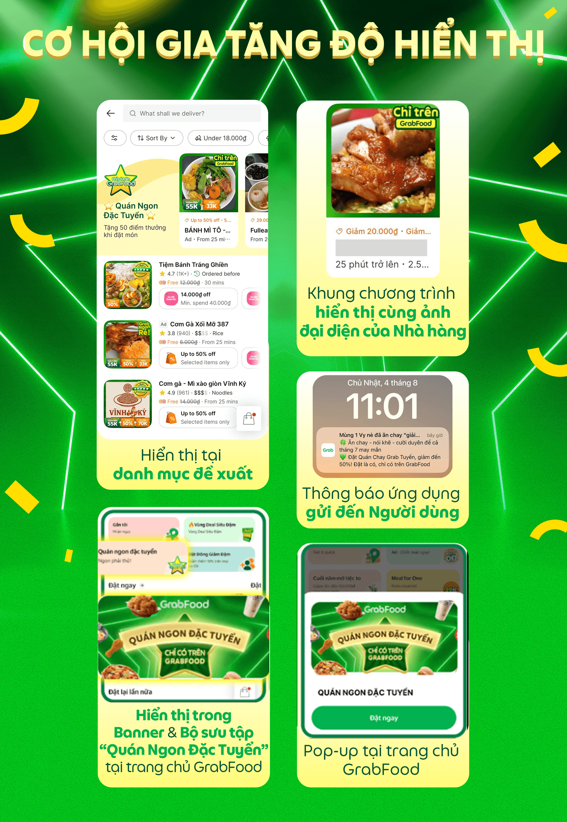 ⭐️ QUÁN NGON ĐẶC TUYỂN⭐️ là chương trình do Grab tài trợ 100% nhằm hỗ trợ các Đối tác Nhà hàng GrabFood gia tăng cơ hội doanh thu và tiếp cận tốt hơn với Người dùng, với hàng loạt quyền lợi hấp dẫn về hiển thị, mã ưu đãi, hoàn tín dụng quảng cáo,...