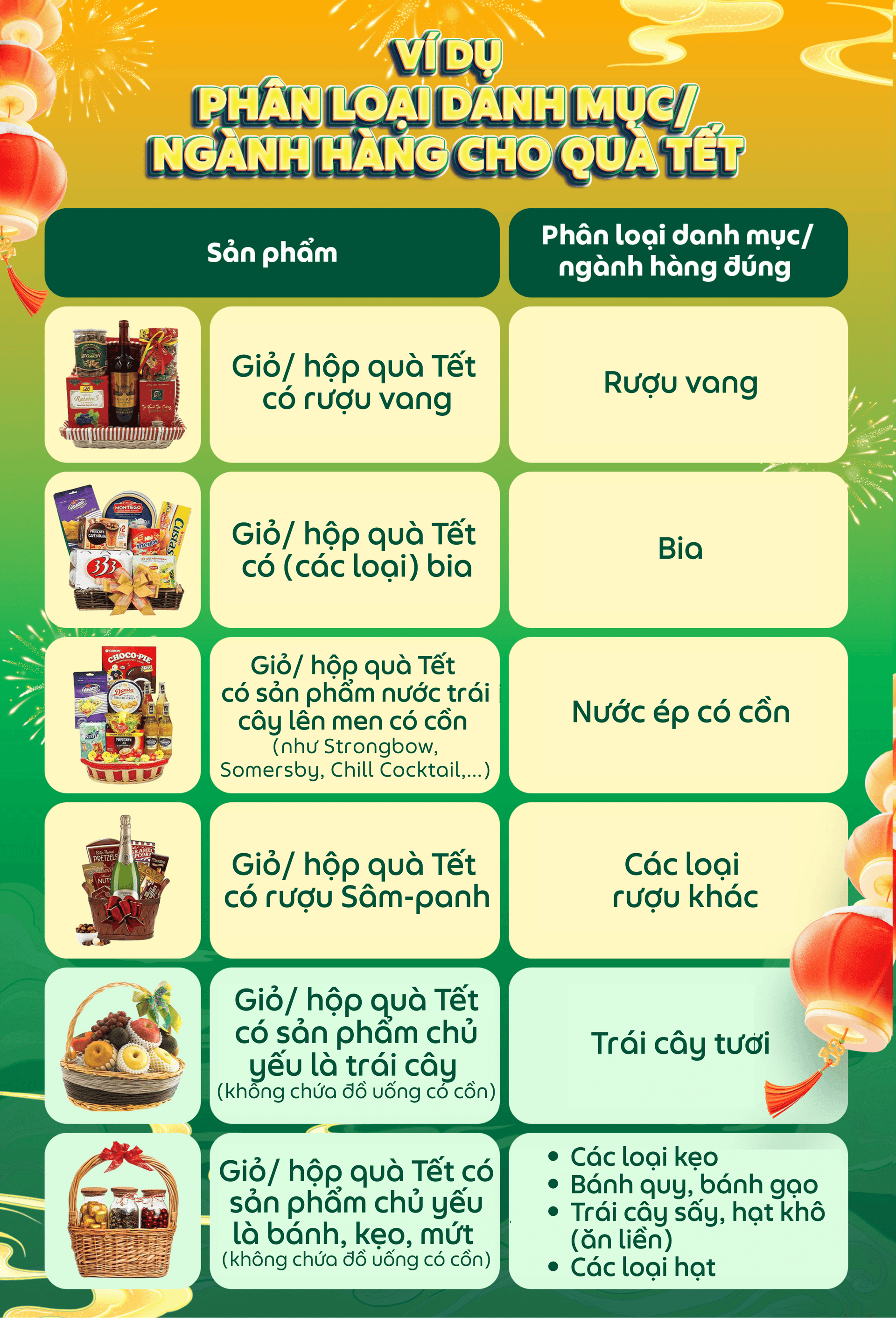 Ghi rõ nồng độ cồn nếu giỏ/ hộp quà Tết có chứa đồ uống có cồn.