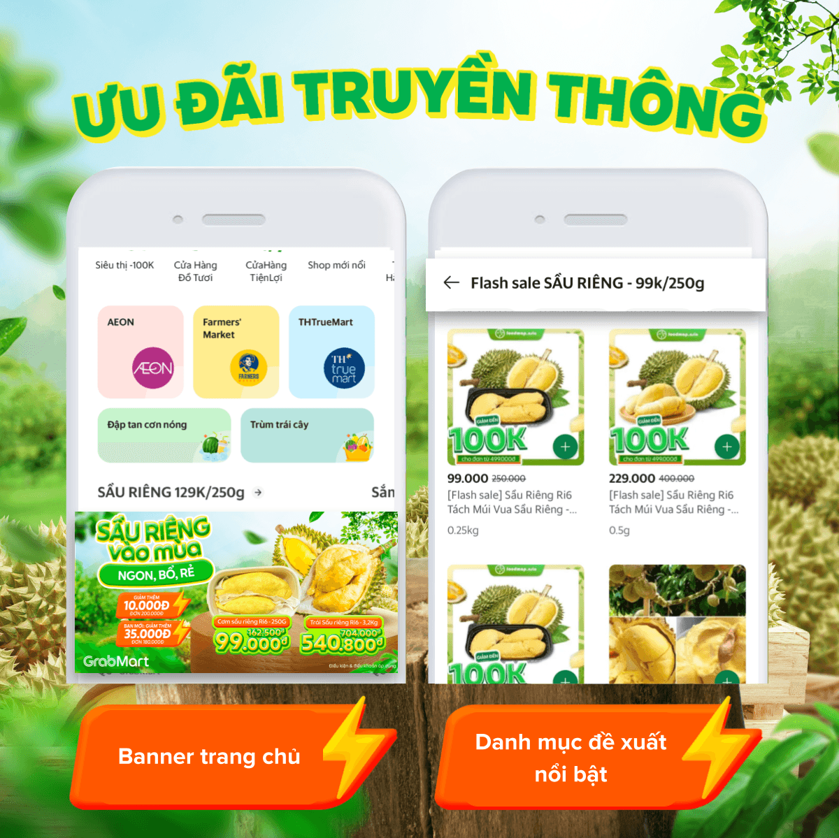 Cơ hội nhân đôi hiển thị, lọt top đầu tìm kiếm trên ứng dụng Grab, cải thiện doanh thu, tăng số lượng đơn hàng GrabMart là đây chứ đâu. Nhanh tay nắm bắt cơ hội kinh doanh mùa sầu riêng này nhé Đối tác ơi!