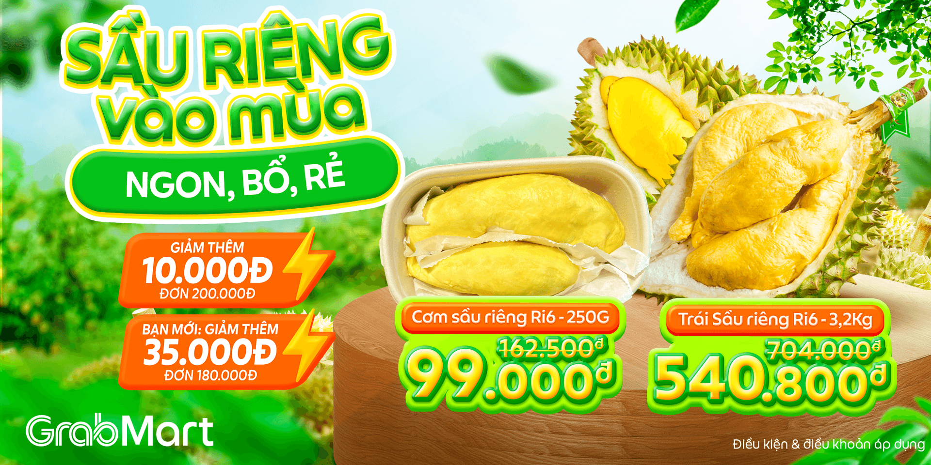 Hãy sẵn sàng khởi động mùa hè tươi mới, doanh thu phơi phới cùng GrabMart với chương trình “Sầu riêng vào mùa” 🛒Mùa hè chính là mùa của những loại trái cây nhiệt đới lên ngôi, ngoài măng cụt, vải thiều, chôm chôm thì sầu riêng không hổ danh là “nữ hoàng” của mùa hè này, nhu cầu người dùng tìm kiếm từ khóa sầu riêng và nhu cầu giao hàng tận nơi tăng đáng kể.