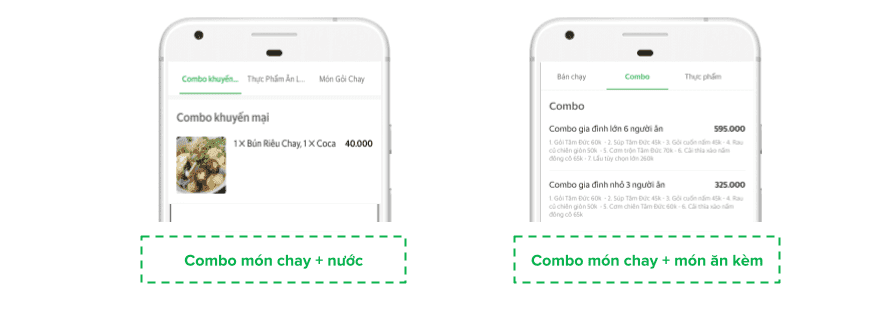 Ví dụ: Combo Món chay bán chạy, Combo món chay ngon,…